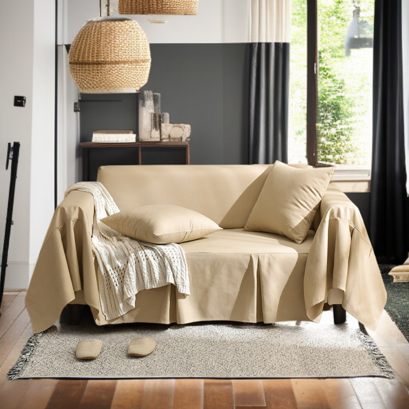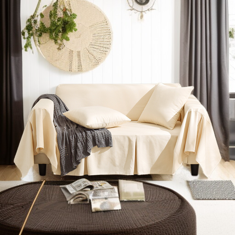 お手入れが簡単なクリーム色のソファクッション